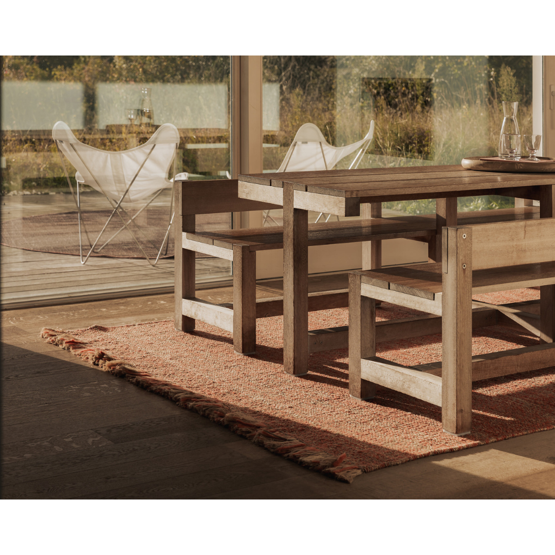 Tip: Take the size of your table for example 1 m width by 2 m length. Add at least 70 cm on each side, so we arrive at a carpet of 2 m 40 wide by 3 m 40 long. Note, if you have the space then a carpet of 2 m 50 width by 3 m 50 length is a nice size.